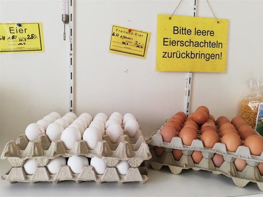 Frische Eier, Honig, Nudeln, Kartoffeln, saisonales Gemüse, Wurstwaren und vieles mehr...